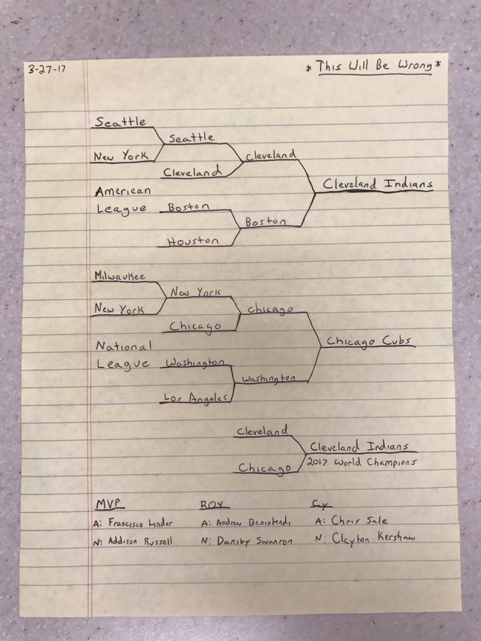 Baseball is not about winning. It’s about falling in love and getting hurt. Please be sure to tell me how stupid I am over on the twitter, where I talk baseball from @LowOutsideCurve. Check out the last three years below. Yes, I have the Cubs in the World Series every year. It’s not entirely homerism. They had a really good lineup every year, but whatever, the baseball season is long and full of problems. I own my failures.