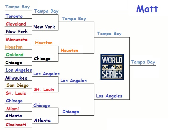 Alright so that was something, right? About an hour after my fourth installment of predictions were posted, the league expanded this year’s playoffs to 16 teams. I kinda just tossed my arms in the air about it. Then it felt like the season would be canceled every day for about three weeks. Somehow, almost everyone played 60 games. So here we are, the field is set, and the chaos of a best-of-three first round series is ready for Tuesday. Who will survive all the way through the most bonkers MLB playoffs ever? Well, some of us got together in a digital way and tried to guess at it for your amusement.
