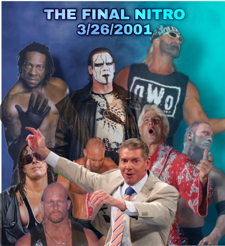 The epilogue to the final Nitro is that WWE brought in a number of the old WCW guys for an invasion angle. It didn’t work. Vince McMahon’s plan was always to bury as many people as possible from WCW. Many were used to make WWE guys look better. Very few ever got a real chance in the company. Only Flair, Booker T, Lance Storm, and Rey Mysterio and later on, Goldberg and Hulk Hogan, had extended successful runs with the company. The war was over, and the victory, long before known, had been settled. The truth is, Vince McMahon and WWE really only bought the tape library of WCW/Jim Crockett Promotions. There was nothing else to buy. Nitro had no time slot. The biggest stars opted to stay at home and continue to get paid through the end of their contracts by AOL Time Warner. Ted Turner had long since been pushed out of power. WWE had vanquished their opponent, though in many ways, WCW had done a good job of vanquishing itself.