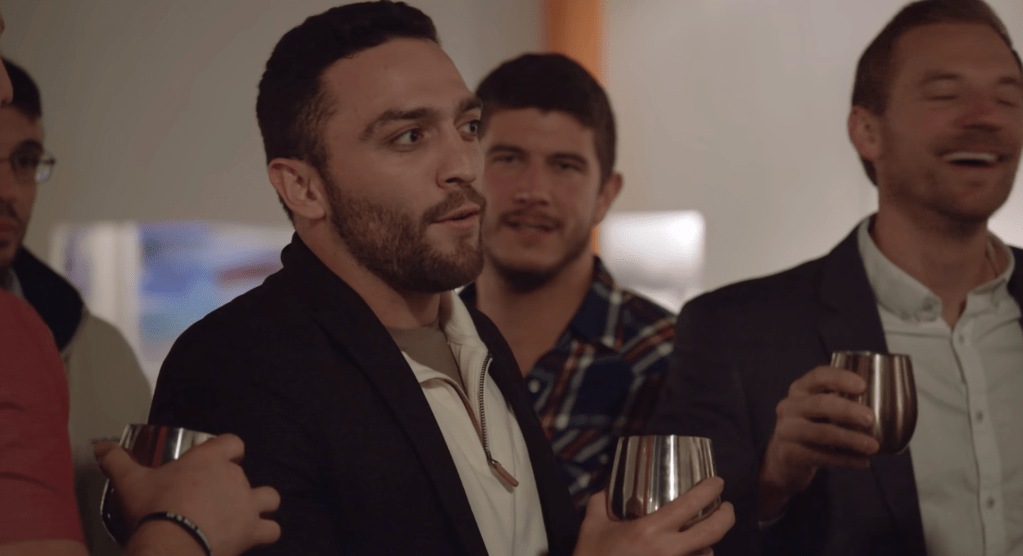 At first, while watching this show, the weird metallic glasses weren’t a big deal. I caught the first glimpse of these glasses on Season 1, Episode 1 of Love is Blind at around the 6-minute mark. But not everyone on the show was drinking out of these just yet. Throughout the first episode, people are drinking from normal wine glasses most of the time. In fact, that first metallic wine glass from Episode 1 is an anomaly for a lot of the first Season, up until we get to Episode 6, and the gold metallic glass pops up again during a get-together.