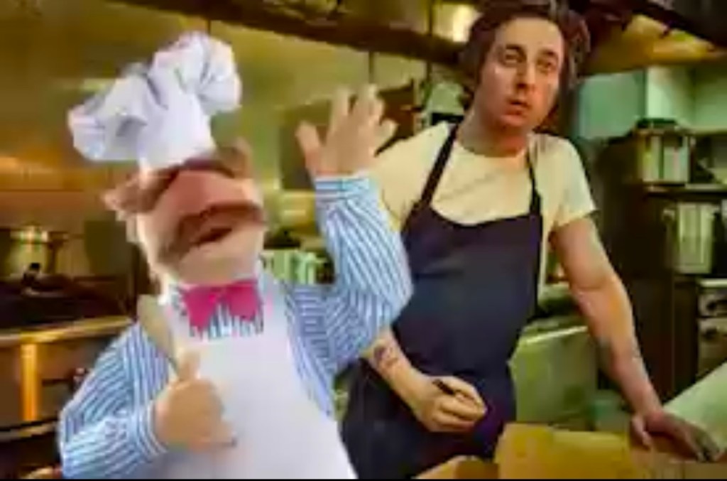 Swedish Chef, Rizzo, and Pepe are working in a restaurant (cast of The Bear cameo?)