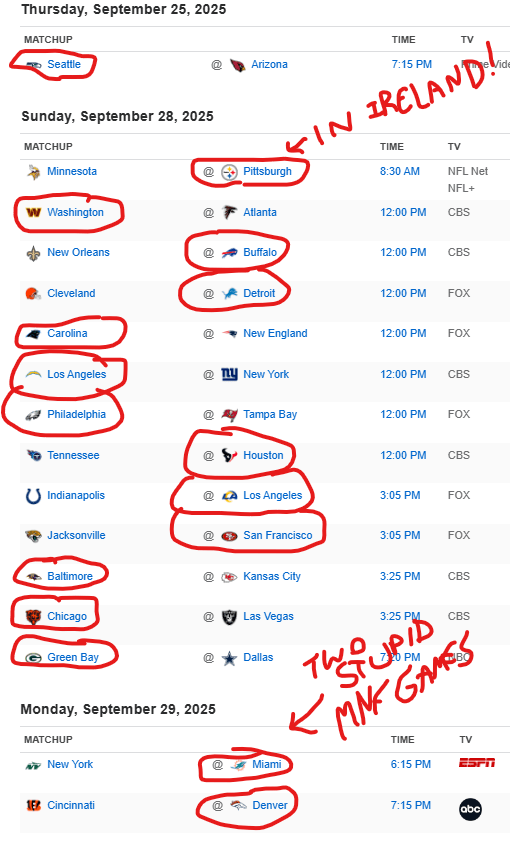 Jake Browning. If you were starting Browning last week against the Vikings, then your fantasy season is already over, or you got wayyy too cocky in a guillotine league, thinking you didn’t need multiple quarterbacks. The problem is, Black Hole Browning actively ruined Chase Brown, Jamaar Chase, and Tee Higgins. Are you really telling me that the Bengals can’t pick up the phone and just offer a 7th round pick to the Giants for Jameis Winston? At least that would be fun, watching Winston huck 60 yard bombs to Chase all day.